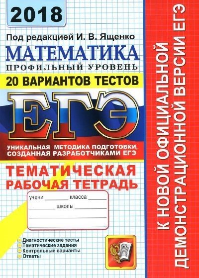ЕГЭ 2018. Математика. Профильный уровень. 20 вариантов тестов от разработчиков ЕГЭ. Тематическая рабочая тетрадь